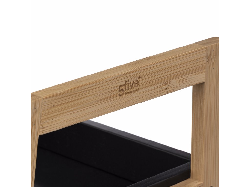 ️ Kvalitní Konstrukce: Tento regál je vyroben s důrazem na kvalitu. Bambusové dřevo poskytuje nejen pevnost, ale i odolnost vůči vlhkosti, což ho činí ideálním pro koupelnové prostředí. Černé police jsou vyrobené s MDF, odolné a snadno se čistí.
