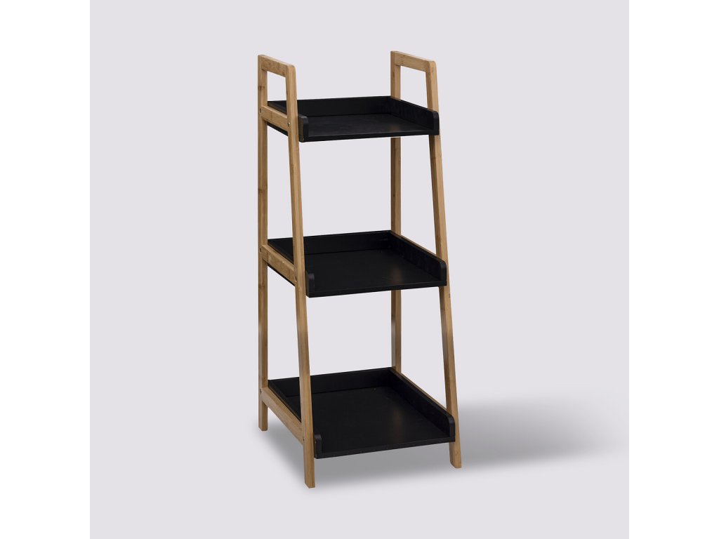 3-Policový Regál - Bambusový, do koupelny, do šatny, barva polic černá , rozměry 885 × 330 × 370 mm (V׊×H)