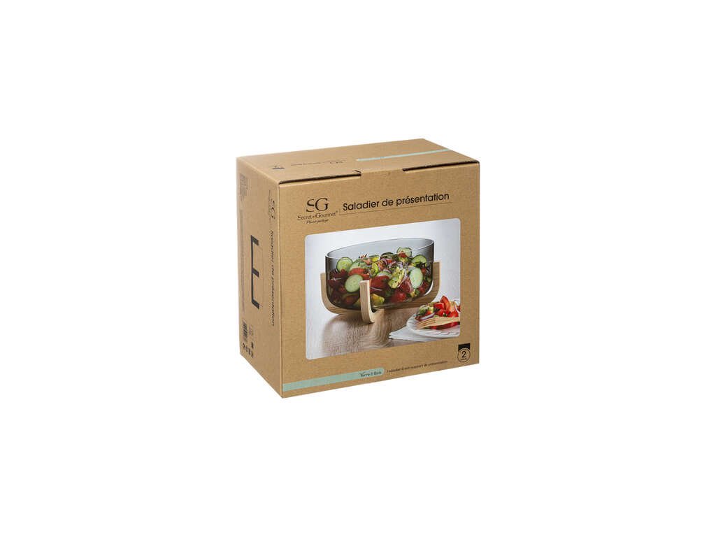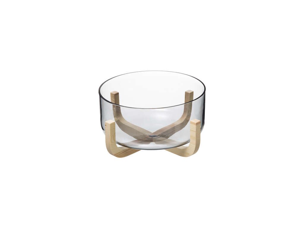 Salátová mísa ze skla, 24 cm, s dřevěným podstavcem