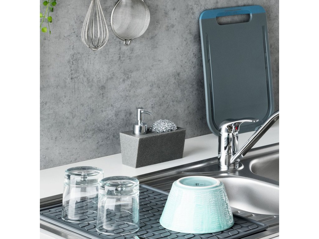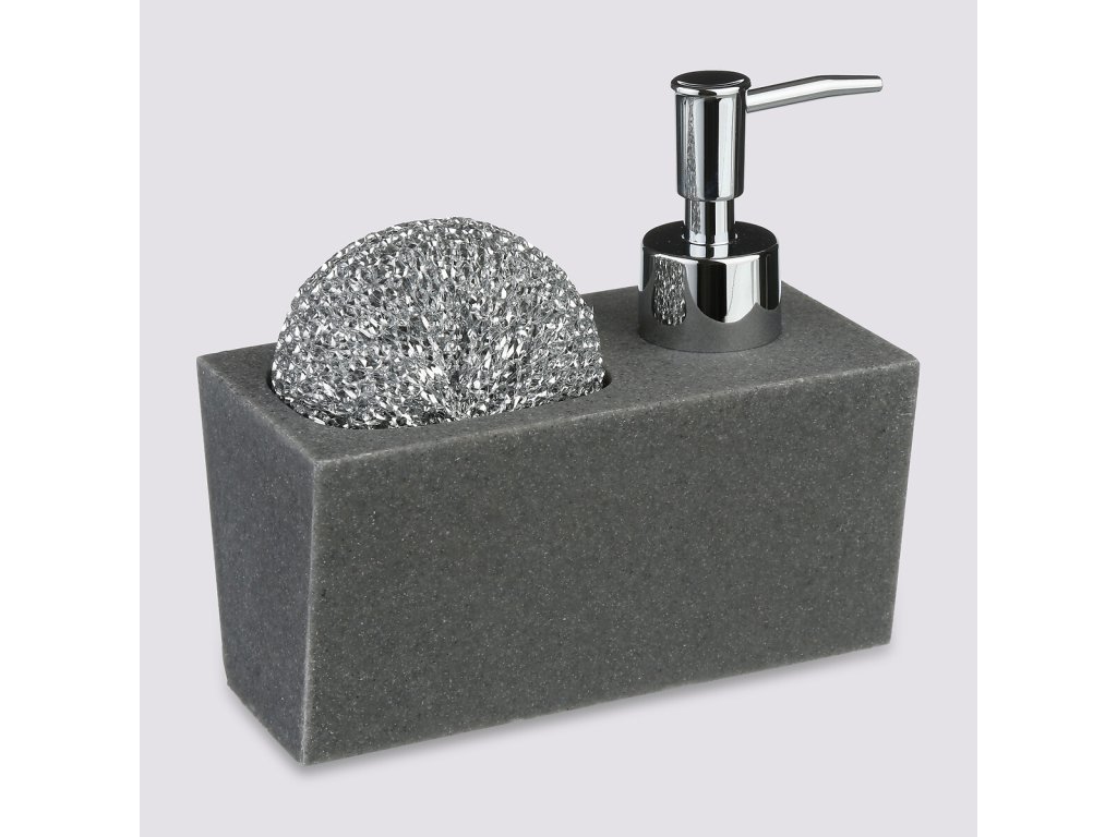 Stylový dávkovač + houbička na nádobí, šedý