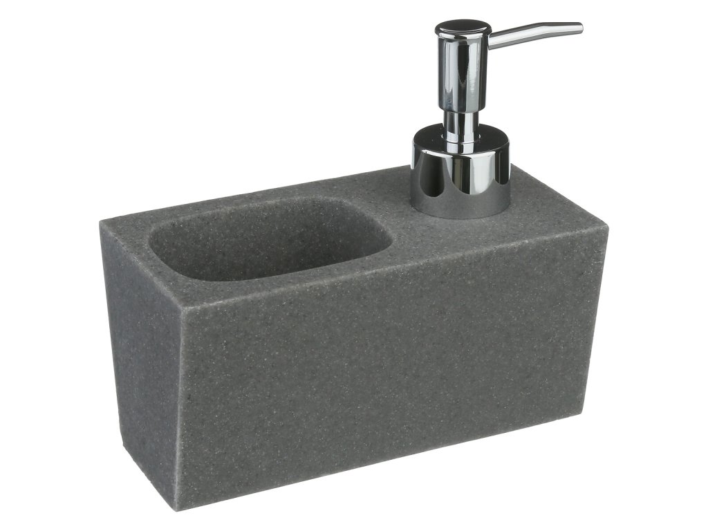 Stylový dávkovač prostředku na mytí nádobí + houbička, barva tmavě šedá, objem 170 ml, rozměry D. 14,6 x H. 7,5 x V. 13,4 cm, Polyresin.