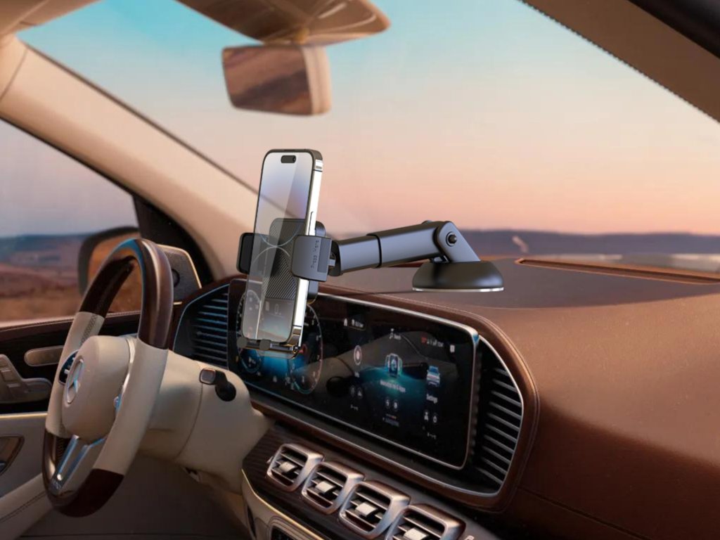 Bezpečná instalace Držák je vybaven přísavkou na čelní sklo nebo palubní desku, umožňuje bezpečnou instalaci na středovou konzoli nebo čelní sklo vozu. Díky tomu držák během jízdy nespadne ani se neuvolní. Teleskopické rameno umožní přizpůsobit délku.
